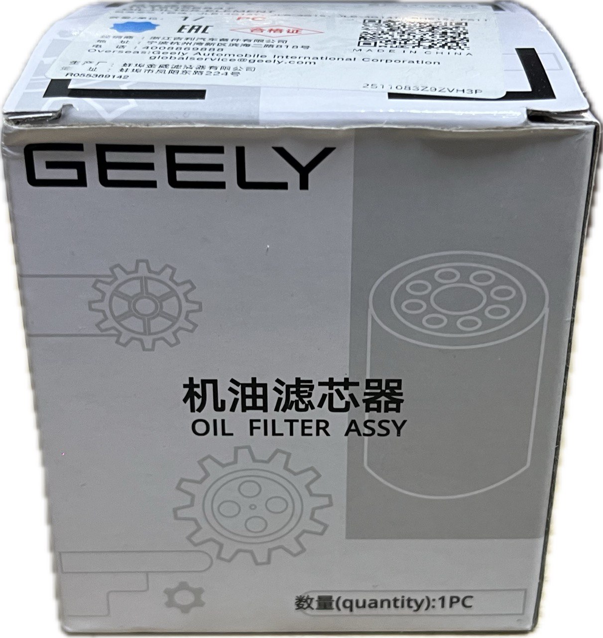 Оригинальный масляный фильтр Geely 1016056847 – купить для Coolray (2023–н.в.), Emgrand, Atlas, Cityray, Preface, Lynk & Co 03/06