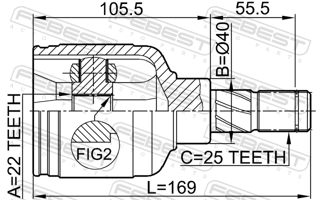 Внутренний ШРУС FEBEST 0211EP16 (0211-EP16). Трипод для Nissan Primera P10/P11/W10/WP11 с МКПП. Шлицы 22x25, диаметр 40 мм. Аналог 392042F026, 391012F011, 392042F025. Надежность и точная посадка.